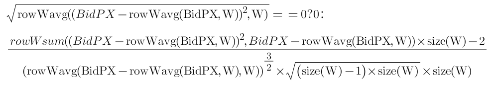 skew = rowWsum(x_2, x_1) \ (x_var * x_std) * adj \ len