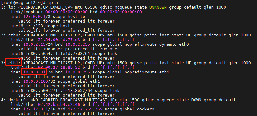 interfaceto match the network card used by HAProxy.The VIP must be within the same subnet as the primary and backup nodes. For example, check the current node IP with