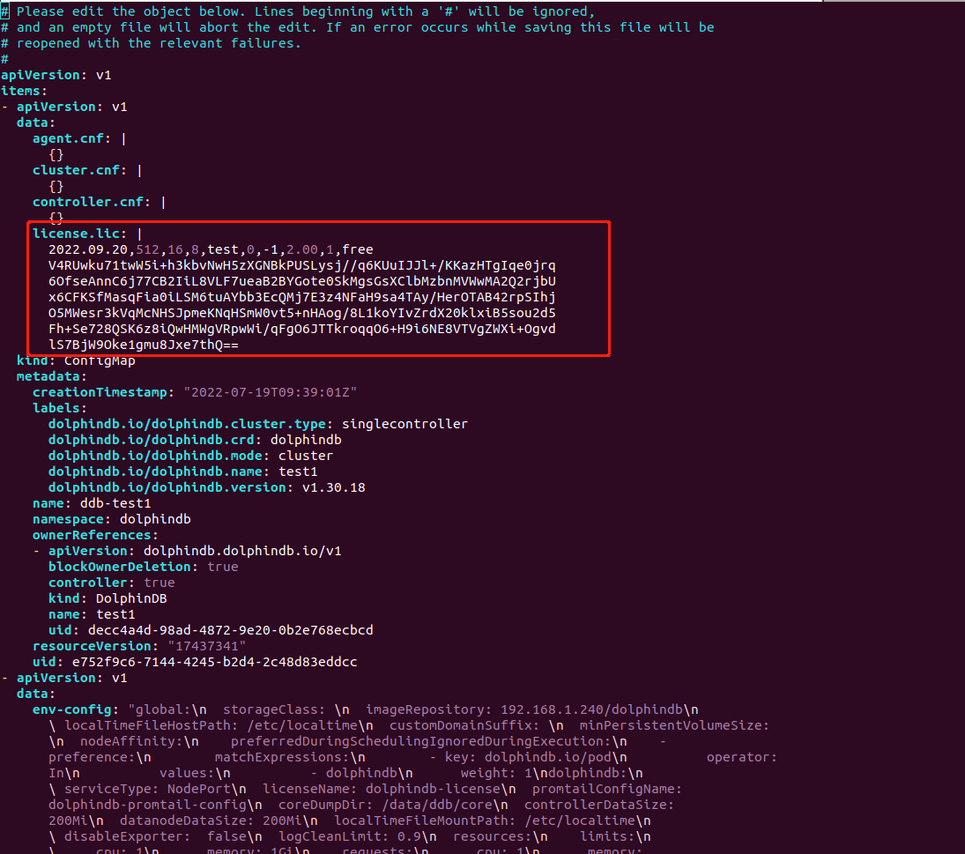 $ kubectl edit cm ddb_test1 -oyaml -ndolphindb