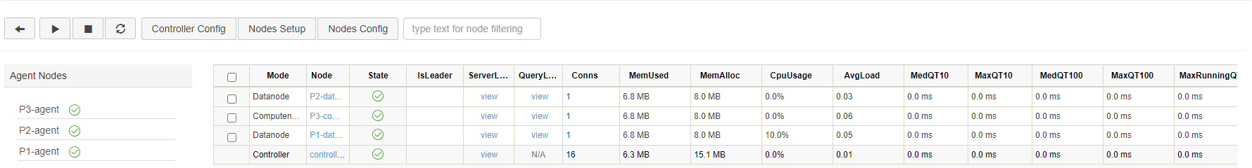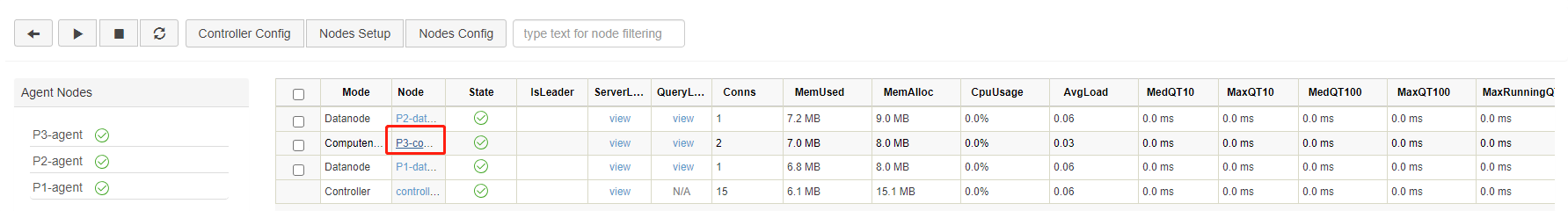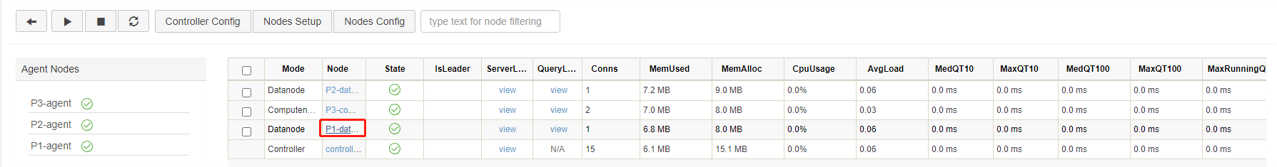 First, open the web interface of the Controller, and click on the corresponding Data node to open its Shell interface (e.g. P1-datanode):