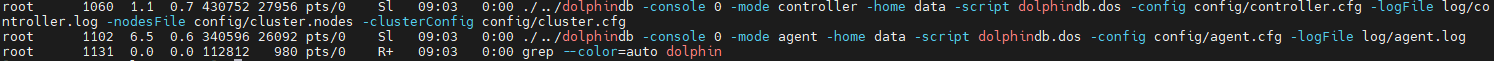 ps aux|grep dolphindbThe following information indicates a successful startup: