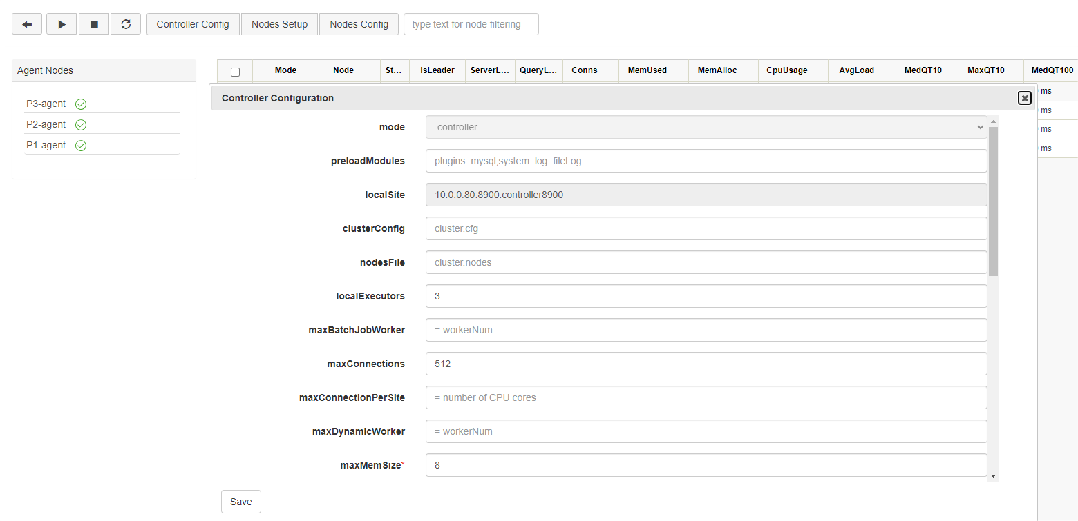 sites=10.0.0.82:8901:P3-agent:agent,10.0.0.80:8900:controller8900:controller(3) Configuration Files of P3 Server