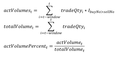 - actVolumeₜ denotes active trading volume within the interval
