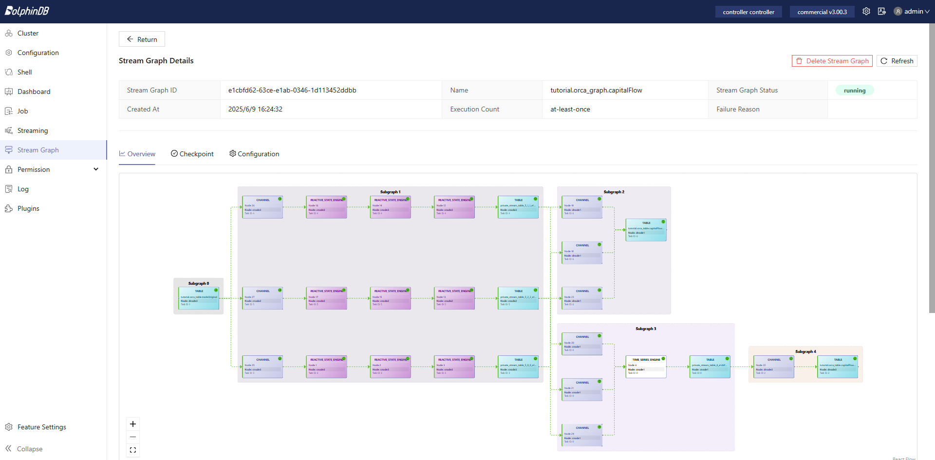 - Submit the stream graph