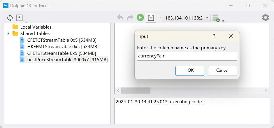 The DolphinDB Excel plugin allows real-time calculation results to be pushed to Excel, enabling Excel to access data from shared stream tables.