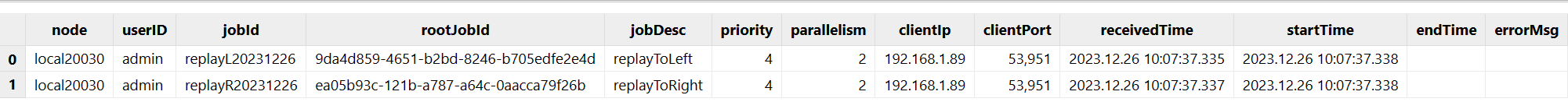 submitJob("replayR","replayToRight",replay,HSBC_Tick,`HSBCStreamTable,`Time,,100)