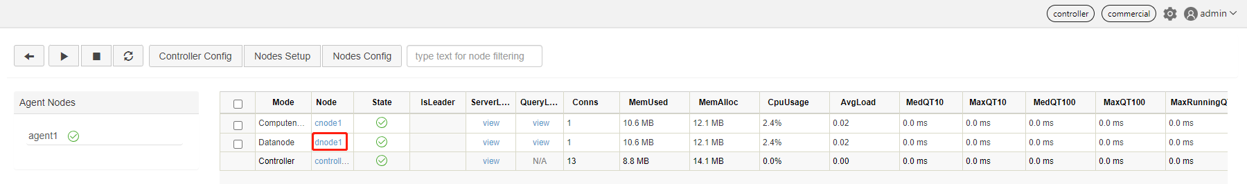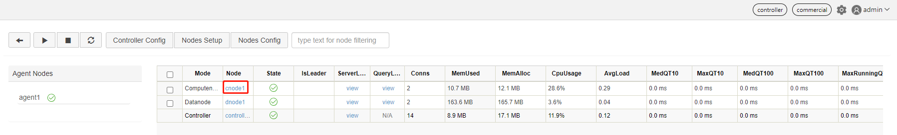 Compute nodes are used for queries and computation. The following example shows how to perform these operations in partitioned tables on a compute node. First, open the web interface of the Controller, and then click the corresponding Compute node to open its Shell interface: