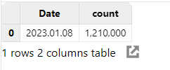 Note: Only metadata of the partitioned table is loaded here. Then execute the following script to count the number of the records for each day in table "pt":