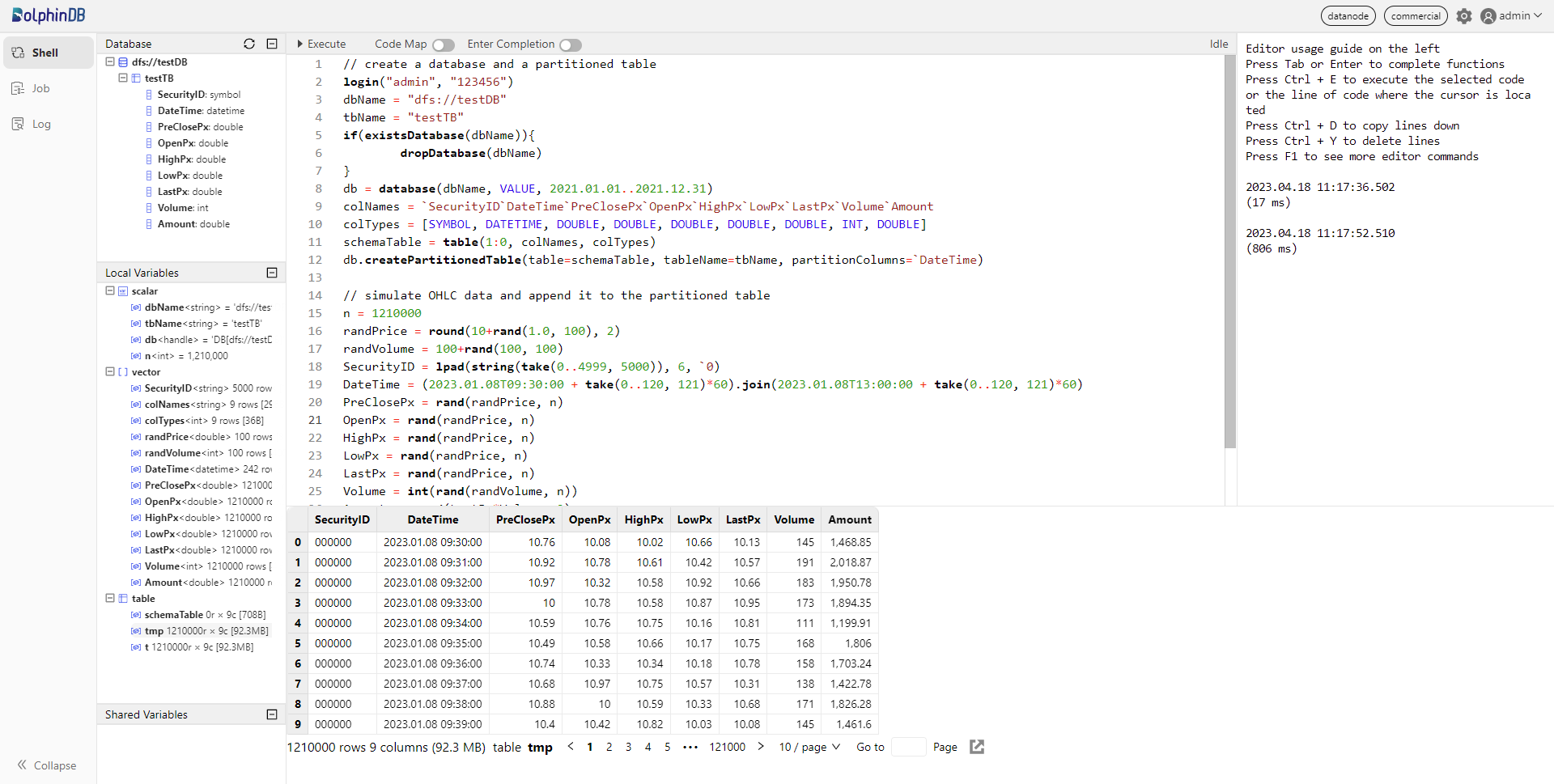 Then, run the following script to generate 1-minute OHLC bars and append the data to the created partitioned table "tbName":