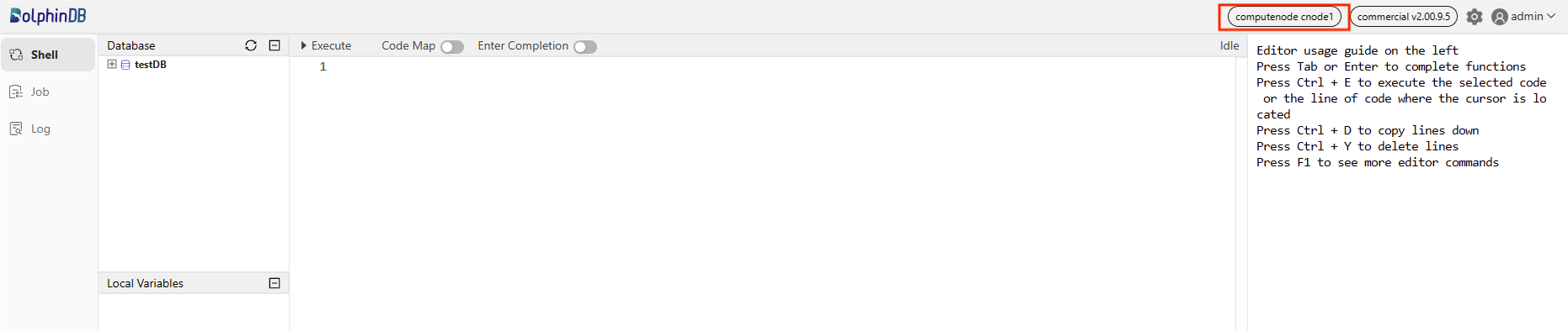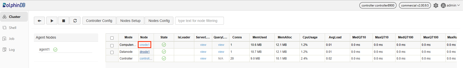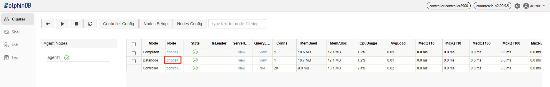 Data nodes can be used for data storage, queries and computation. The following example shows how to create databases and write data on data nodes. First, open the web interface of the Controller, and click on the corresponding Data node to open its Shell interface: