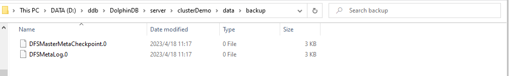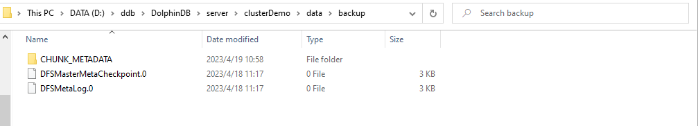 C:\DolphinDB\server\clusterDemo\data\dnode1\storage\CHUNK_METADATACopy the CHUNK_METADATA file to the above backup folder: