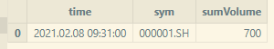 share streamTable(1000:0, `time`sym`sumVolume, [DATETIME,STRING,INT]) as result