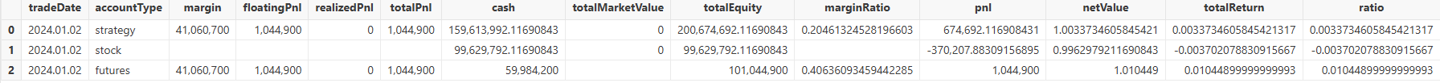 In this example, all futures and options positions are managed through a single unified account for capital accounting and risk control. The cashDict dictionary is used to set the account's initial capital. This not only allows margin to be shared and dynamically allocated across different assets, but also more realistically simulates the risk management of a shared multi-asset account in live trading.