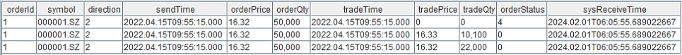replay(inputDict, "MatchEngineTest" + i,`TradeTime,`TradeTime,,,1,`sourceType`seqNum)