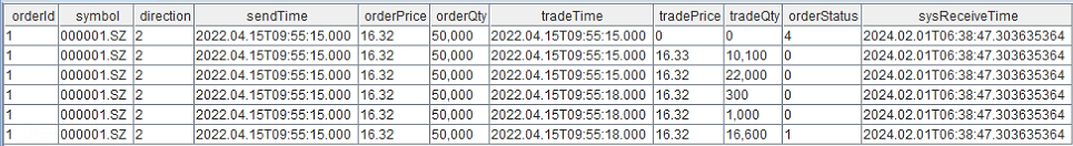 replay(inputDict, "MatchEngineTest" + i,`TradeTime,`TradeTime,,,1,`seqNum)