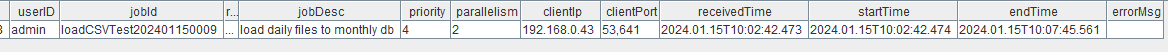 submitJob("loadCSVTest","load daily files to monthly db",loadDaily, path)