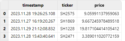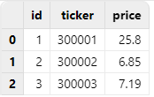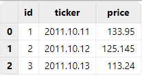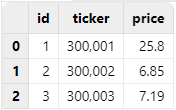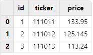 | id | ticker | price |