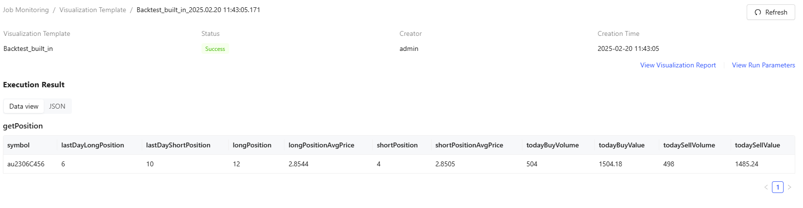 - Run Information displays detailed backtest strategy information, including strategy name, backtest type, strategy type, data type, creation time, run status.