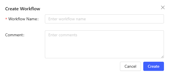 Enter the workflow name and comment (optional) to describe the workflow. Click Createto complete creating.