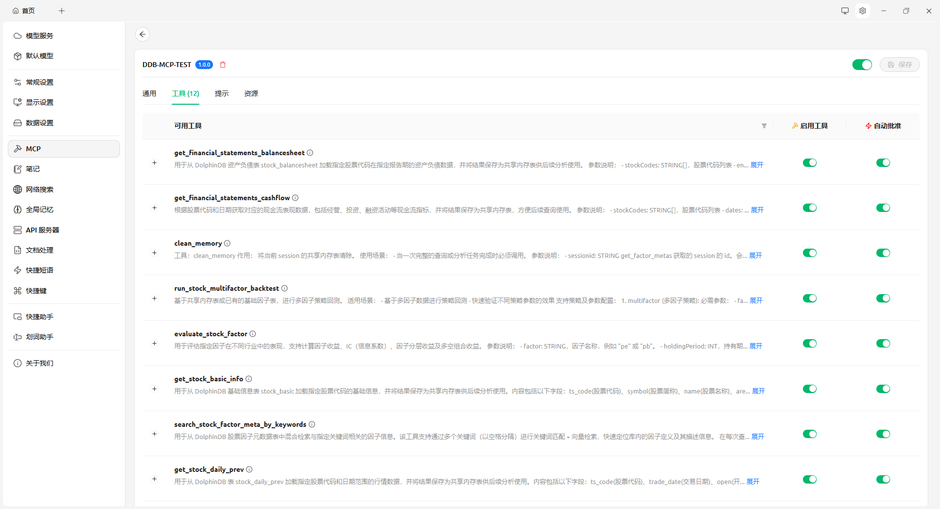 配置完成后,即可使用 DolphinDB MCP Server 提供的工具和实时数据。