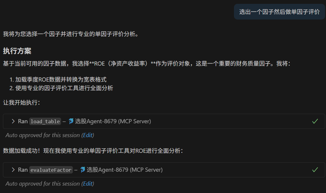例如,在“选股 Agent”中查询某个衍生因子并进行单因子评价时,Agent 会触发多步工具调用: