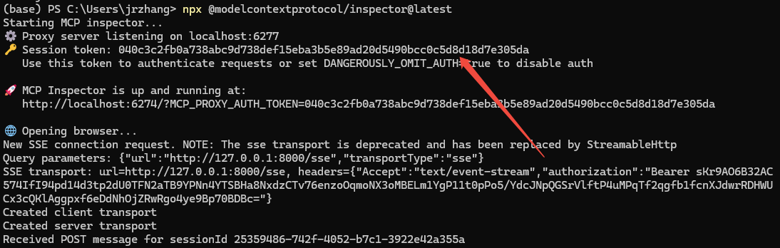 npx @modelcontextprotocol/inspector运行后会自动打开浏览器进入 Inspector 页面。