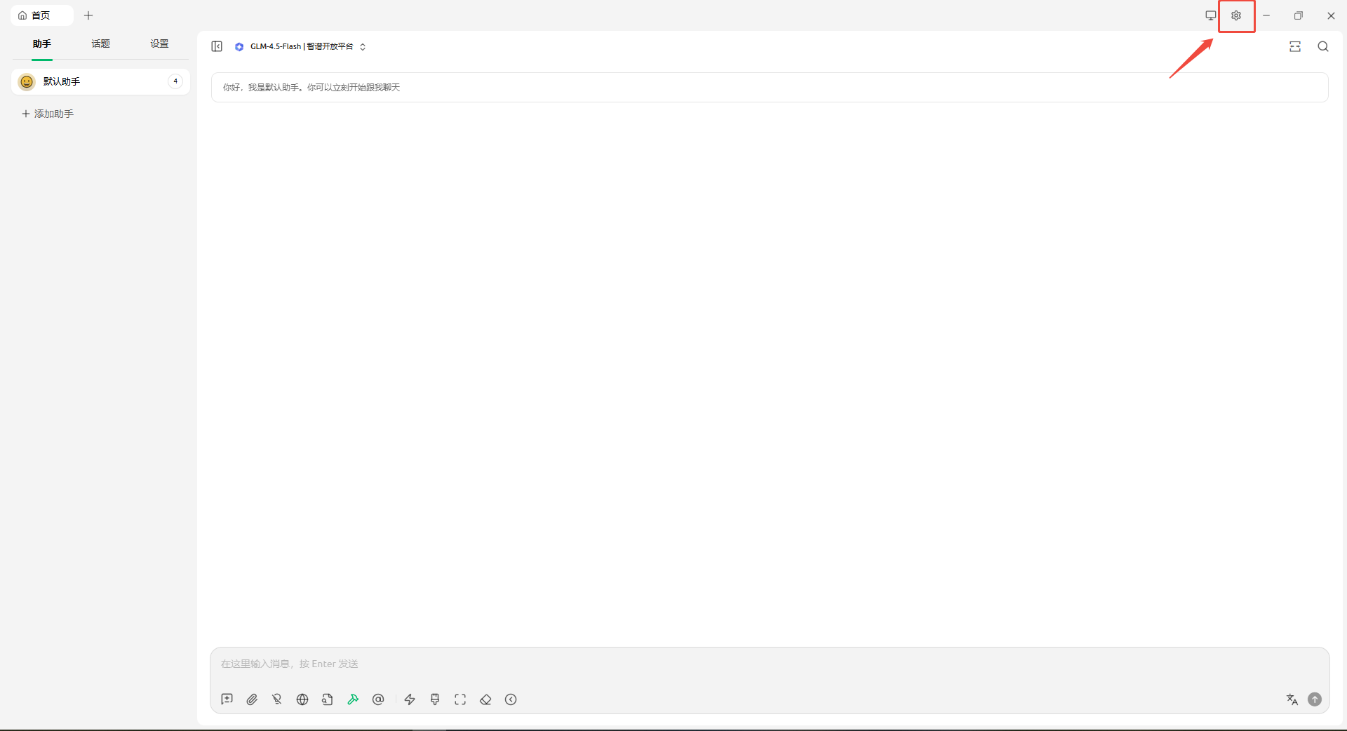 打开 Cherry Studio,点击界面右上角的 “设置” 按钮进行配置。