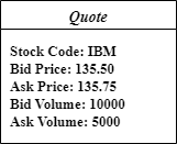 事件是描述对象变化的属性值的集合。例如,下图显示了股票报价事件。每个股票报价都有许多属性,包括当前买价、当前卖价和当前交易量。在实际生产场景中,事件以数据流的方式存在并源源不断地产生。
