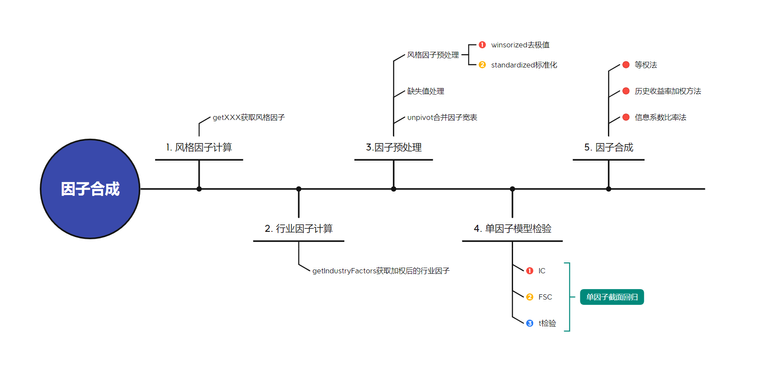 本文首先基于 barraFactorsCal 模块得到用于建模的多因子窄表,具体流程如下: