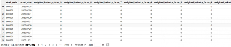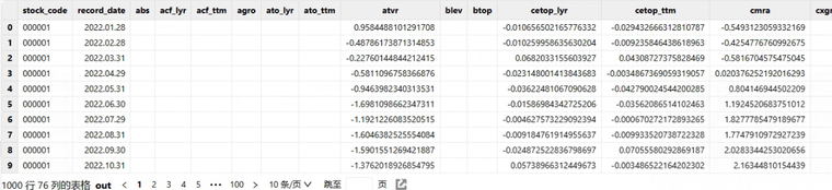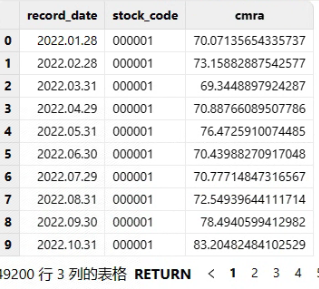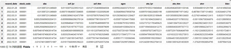 单个因子计算函数的返回结果均是窄表,返回结果大致如下: