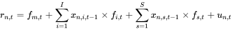 CNE6 模型是 Barra 的面向中国股票市场的多因子模型。该模型考虑了一个国家因子、多个行业因子以及多个风格因子。假设市场中共有 N 支股票,P 个行业,以及 Q 个风格因子。在任意给定时间点,该模型使用因子暴露和个股收益率构建截面回归(cross-sectional regression)如下
