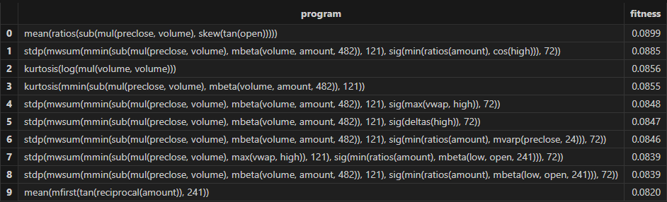 若遗传算法生成的因子表达式满足以下条件,则说明该因子具有较强的线性收益率预测能力: