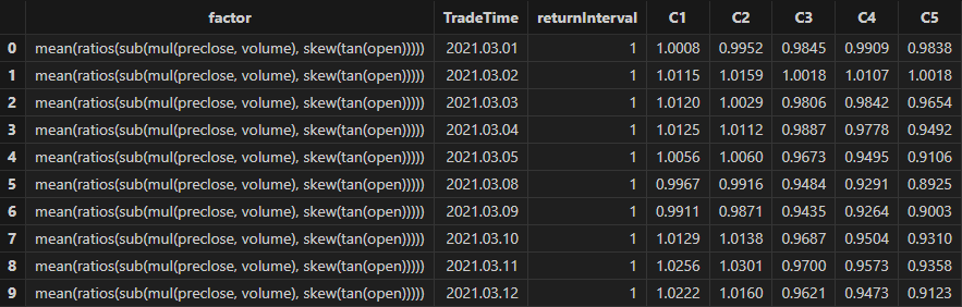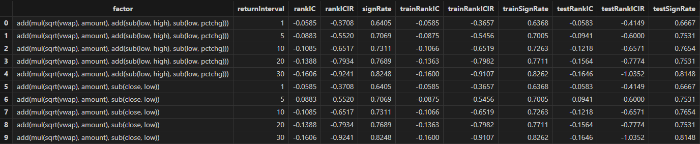| 因子表达式相关系数均值阈值 | corrThreshold | 0.7 |