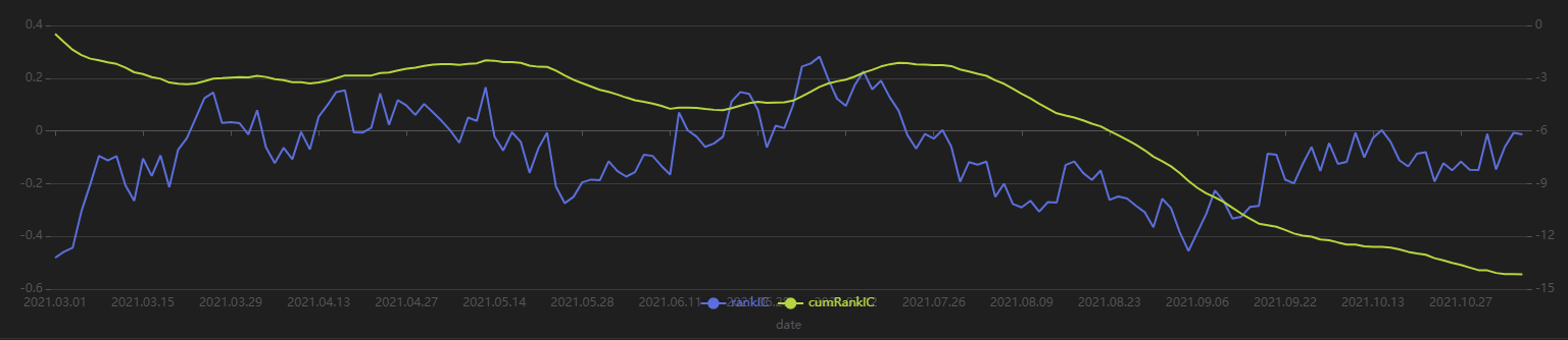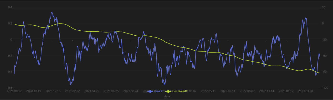 分层回测收益: Top 组 < Middle 组 < Bottom 组且 RankIC 稳定为负